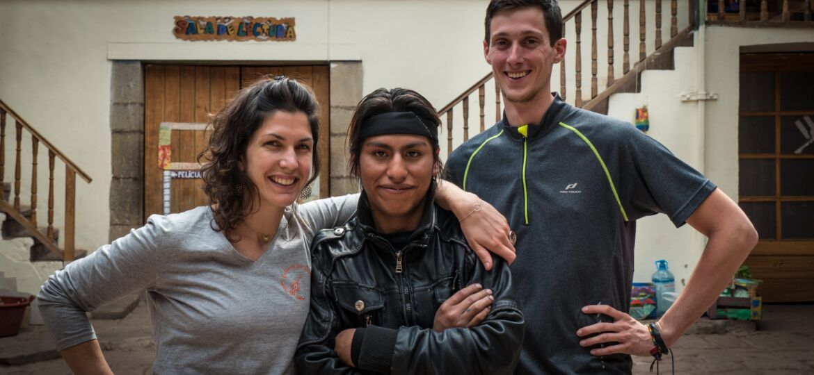 J: Somos parte del proyecto “lls sont demain”/“Son el futuro”, que consiste en ayudar a varias asociaciones en su comunicación, proponemos hacer videos solidarios. Estamos ahora de viaje por América Latina para realizar este proyecto, empezando por Qosqo Maki. Realizar videos es el trabajo de Simón, y yo conozco bien el funcionamiento de las asociaciones. Queríamos venir en el Perú, nos ha parecido interesante el trabajo de Qosqo Maki.